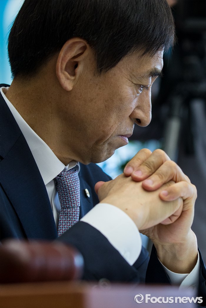 (서울=포커스뉴스) 14일 오전 서울 중구 한국은행에서 열린 제14차 금융통화위원회의에 참석한 이주열 한국은행 총재가 생각에 잠겨 있다.