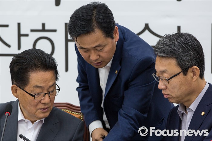 (서울=포커스뉴스) 박지원(왼쪽) 국민의당 비상대책위원장과 김성식(오른쪽) 정책위의장, 김관영 원내수석부대표가 14일 오전 서울 여의도 국회에서 열린 원내정책회의에 참석해 대화 하고 있다.