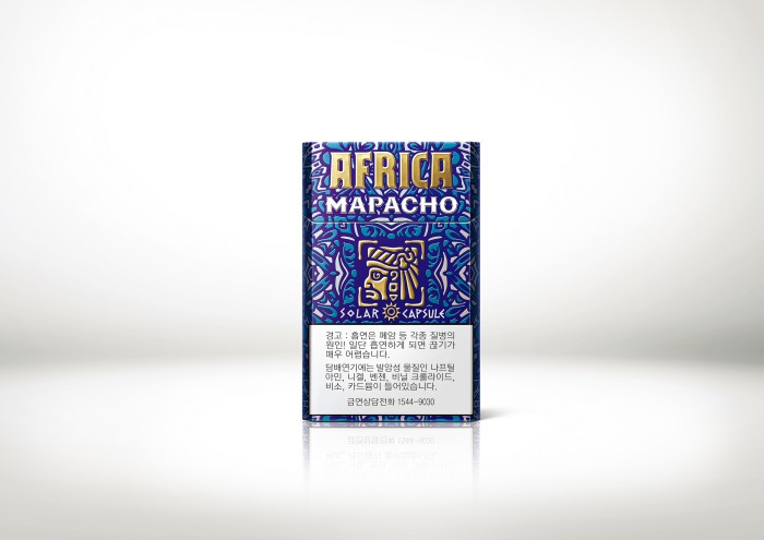 김기수 KT&G 브랜드팀장은 "'아프리카 마파초'는 마야 문명의 담배를 모티브로 활용한 제품으로, 5mg 레귤러 제품의 풍부하고 부드러운 흡연감이 특징"이라며 "독특함과 새로움을 추구하는 소비자들을 중심으로 좋은 반응을 얻을 것으로 기대한다"고 밝혔다.'아프리카 마파초'.<사진제공=KT&G>
