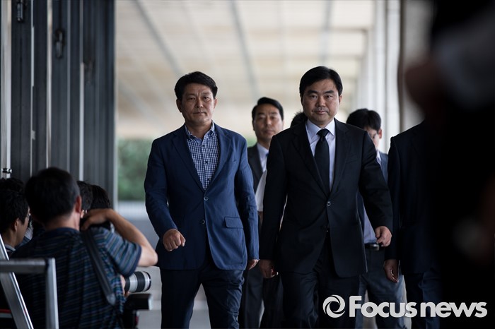 (서울=포커스뉴스) '주식 대박' 논란에 휩싸인 진경준 전 검사장이 14일 오전 서울 서초구 서울중앙지방검찰청으로 출석하고 있다.