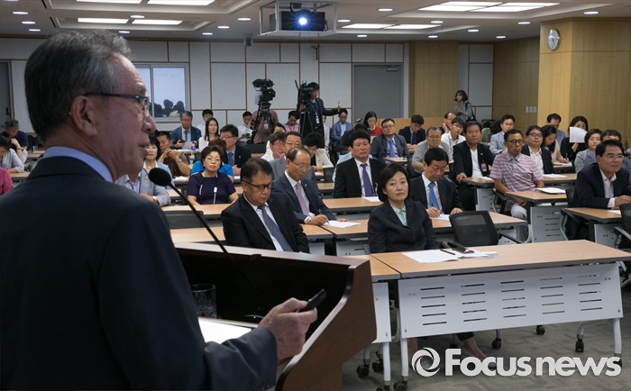 (서울=포커스뉴스) 14일 오전 서울 여의도 국회 의원회관에서 한국적 제3의 길(대표의원 박영선) 후원으로 열린 '개헌을 말하다'에 참석한 김형오 전 국회의장이 개헌의 필요와 방향에 대한 강연을 하고 있다.