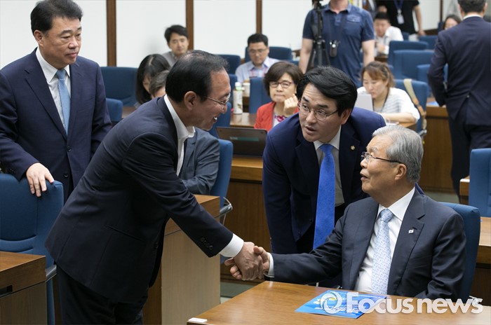 이어 "현재 공영언론의 실패에 대해서 진단하고 해결방안을 모색하기 위한 청문회가 국회 차원에서 소집돼야한다"고 주장하며 "'해직언론인 복직 특별법'도 야3당 공조로추진돼야 한다"고 말했다.(서울=포커스뉴스) 14일 오전 서울 여의도 국회도서관에서 열린 민주적 여론형성을 위한 법제도 개선사항 정책토론회에 참석한 김종인(오른쪽) 더불어민주당 비대위 대표와 노회찬 정의당 원내대표가 악수하고 있다. 2016.07.14 박동욱 기자 (서울=포커스뉴스) 13일 오전 서울 여의도 국회에서 열린 국민의당 비상대책위원회의에 참석한 박지원 비대위원장이 모두발언을 하고 있다. 2016.07.13 박동욱 기자