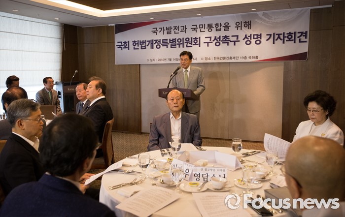 (서울=포커스뉴스) 김덕룡 전 한나라당 원내대표가 16일 오전 서울 중구 프레스센터에서 열린 국회 헌법개정특위 구성 촉구 성명 기자회견에서 발언하고 있다.