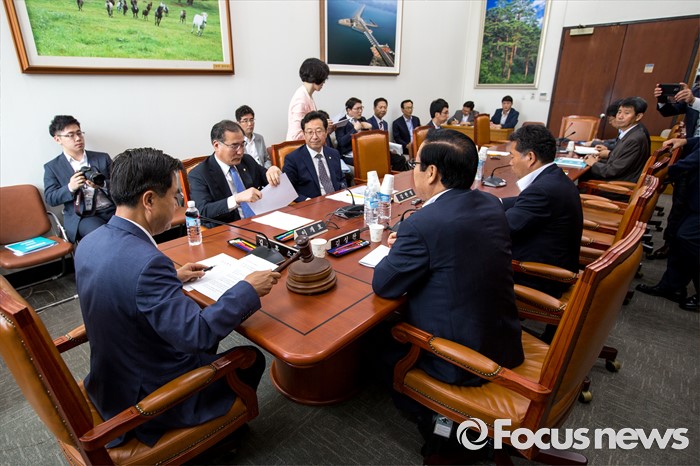 (서울=포커스뉴스) 국회 농해수위 세월호 소위 위원장인 김태흠 새누리당 의원이 14일 오전 서울 여의도 국회에서 열린 농림축산식품해양수산위원회 세월호 소위에 참석해 의사봉을 두드리고 있다.