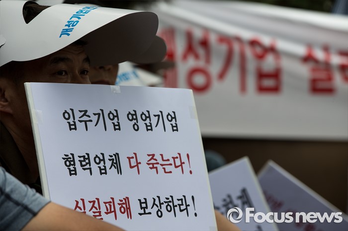 (서울=포커스뉴스) 14일 오후 서울 영등포구 국회의사당역 인근에서 개성공단 비상대책위원회원들이 정부의 폐쇄 조치에 따른 재산권 보호를 촉구하며 집회를 하고 있다.