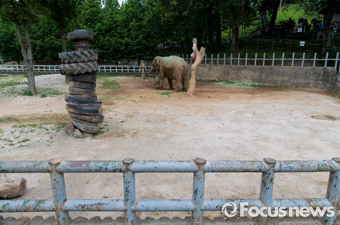 (과천=포커스뉴스) 14일 오후 경기도 과천 서울대공원에서 지난달 24일에 태어난 새끼 아시아 코끼리(암컷)가 가자바(어미)와 함께 야외 방사장을 뛰놀고 있다. 이 아기코끼리는 '멸종위기에 처한 야생 동식물의 국제 거래에 관한 협약(CITES)' 1급 보호종으로 지정된 아시아코끼리다.