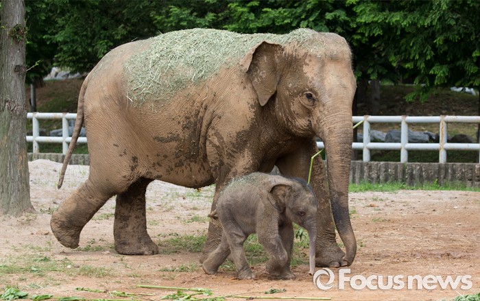 (과천=포커스뉴스) 14일 오후 경기도 과천 서울대공원에서 지난달 24일에 태어난 새끼 아시아 코끼리(암컷)가 가자바(어미)와 함께 야외 방사장을 뛰놀고 있다. 이 아기코끼리는 '멸종위기에 처한 야생 동식물의 국제 거래에 관한 협약(CITES)' 1급 보호종으로 지정된 아시아코끼리다.