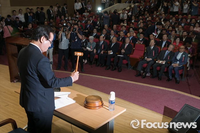 (서울=포커스뉴스) 14일 오전 서울 여의도 국회 의원회관에서 열린 새누리당 전국위원회에 참석한 정갑윤 전국위의장이 개의 선언을 하고 있다.