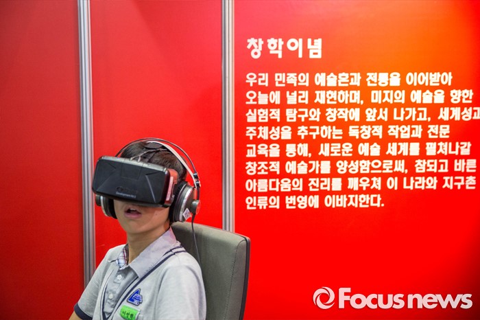 (서울=포커스뉴스) 14일 오후 서울 강남구 코엑스에서 열린 전문대학 엑스포에 참가한 한 학생이 가상현실체험을 하고 있다.