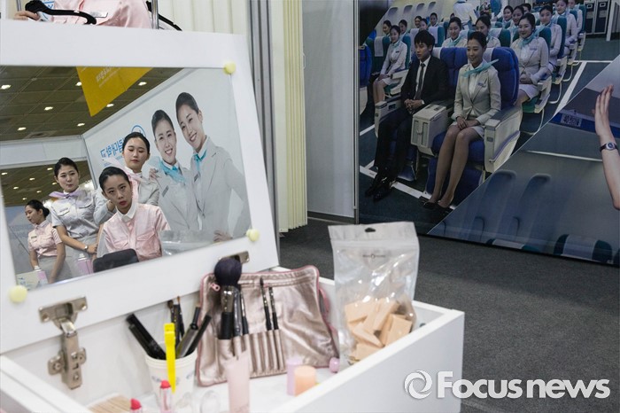(서울=포커스뉴스) 14일 오후 서울 강남구 코엑스에서 열린 전문대학 엑스포에서 항공운항과 학생들이 실습을 하고 있다.