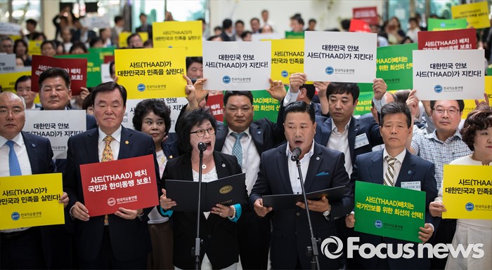 (서울=포커스뉴스) 14일 오후 서울 중구 한국자유총연맹 본부에서 열린 '한국자유총연맹 창립 62주년 기념 통일 선봉대 출범식'에서 연맹 회원들이 사드 배치를 지지하는 결의를 하고 있다.
