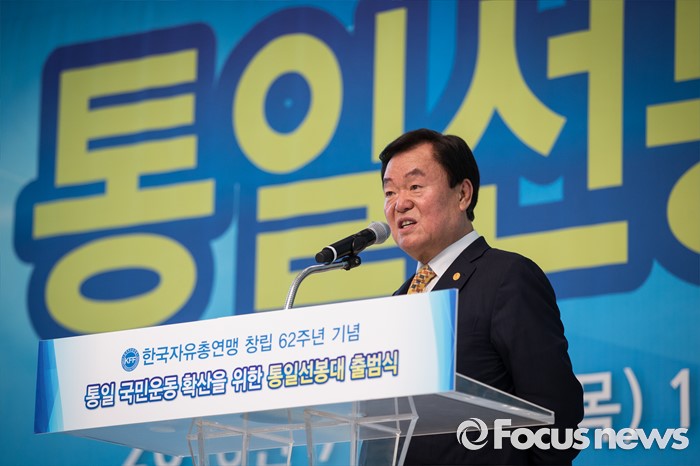 (서울=포커스뉴스) 김경재 한국자유총연맹 회장(전 박근혜 대통령 홍보특별보좌관)이 14일 오후 서울 중구 한국자유총연맹 본부에서 열린 '한국자유총연맹 창립 62주년 기념 통일 선봉대 출범식'에서 사드 배치 지지 발언을 하고 있다.