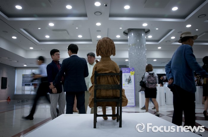 (서울=포커스뉴스)14일 오후 서울 여의도 국회 의원회관에서 열린 12·28 한일합의 무효화와 일본정부의 법적책임이행 촉구를 위한 '진실과 정의는 지지 않습니다' 전시회에 소녀상 관련 작품들이 전시되어 있다.