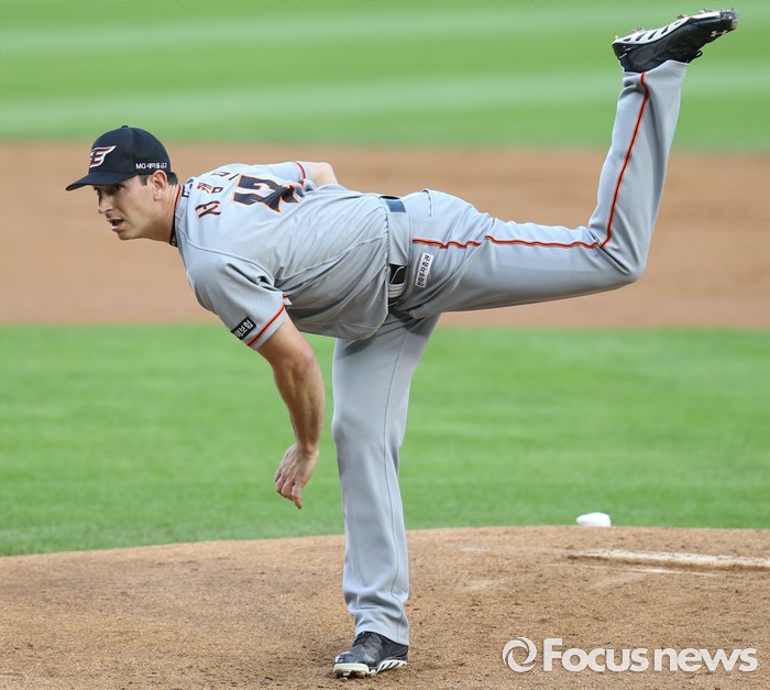 (서울=포커스뉴스) 14일 서울 잠실구장에서 열린 2016 프로야구 한화-LG 경기에서 1회말 한화 선발투수 서캠프가 투구하고 있다.