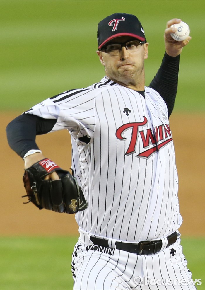 (서울=포커스뉴스) 14일 서울 잠실구장에서 열린 2016 프로야구 한화-LG 경기에서 LG의 새 외국인 투수 허프가 3회에 등판해 위력적인 투구를 하고 있다.