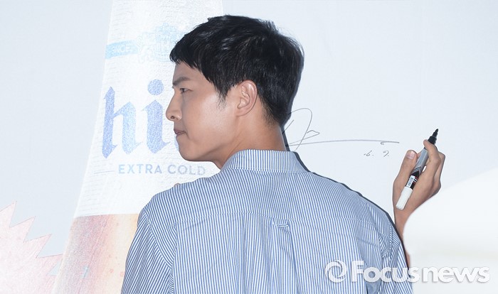 | △ 사인하며 날렵한 턱선 보이는 송중기 |