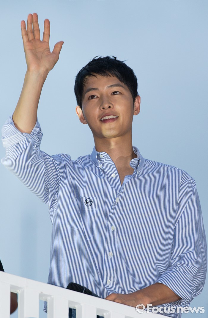 | △ 손들어 인사하는 배우 송중기 |