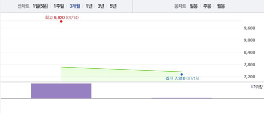 대유위니아의 지난해 매출액은 4311억9700만원, 영업이익은 156억5800만원이다.주가흐름<사진출처=네이버 캡쳐>