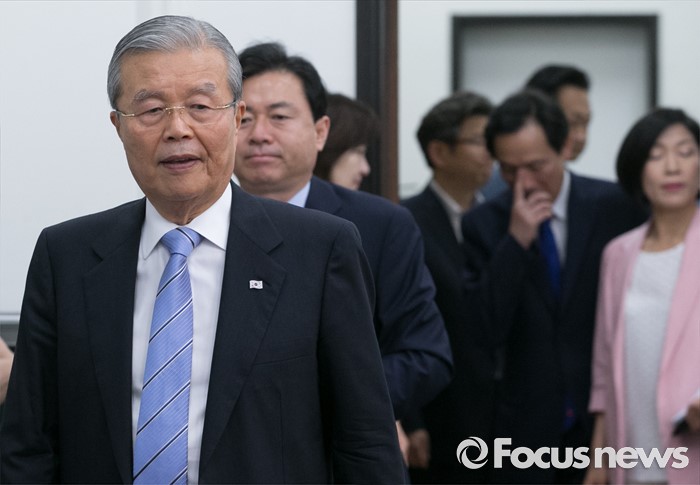 (서울=포커스뉴스) 15일 오전 서울 여의도 국회에서 열린 더불어민주당 비상대책위원회의에 김종인(왼쪽부터) 비대위 대표, 김영춘 비대위원, 우상호 원내대표가 참석하고 있다.