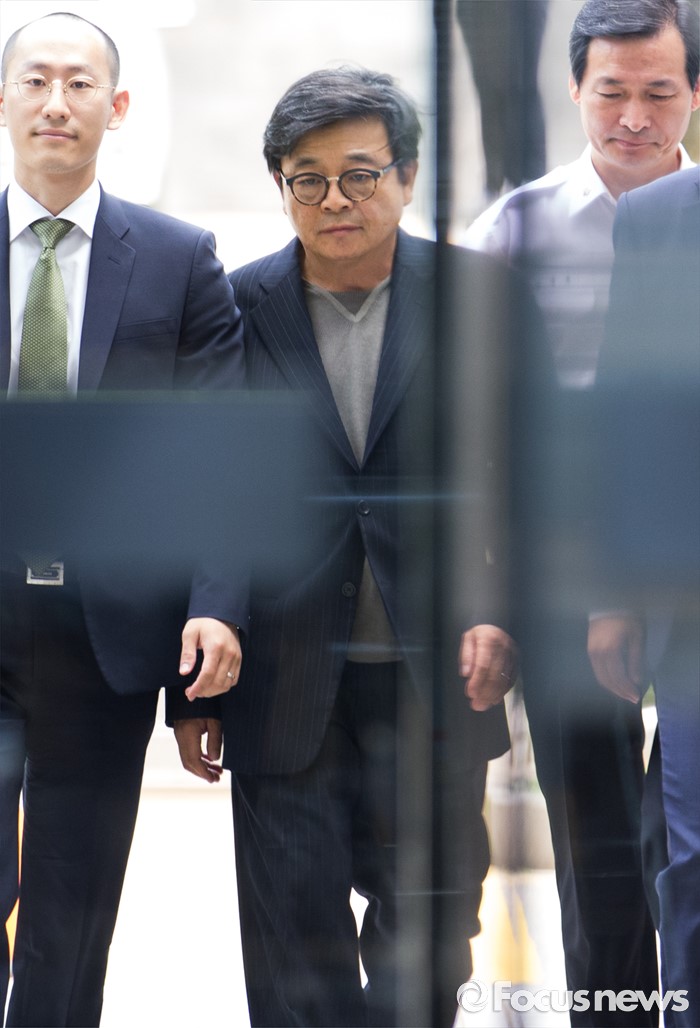 (서울=포커스뉴스) 대우조선해양 경영 비리에 연루된 이창하(가운데) 디에스온 대표가 영장실질심사를 받기 위해 15일 오전 서울중앙지법으로 들어서고 있다.