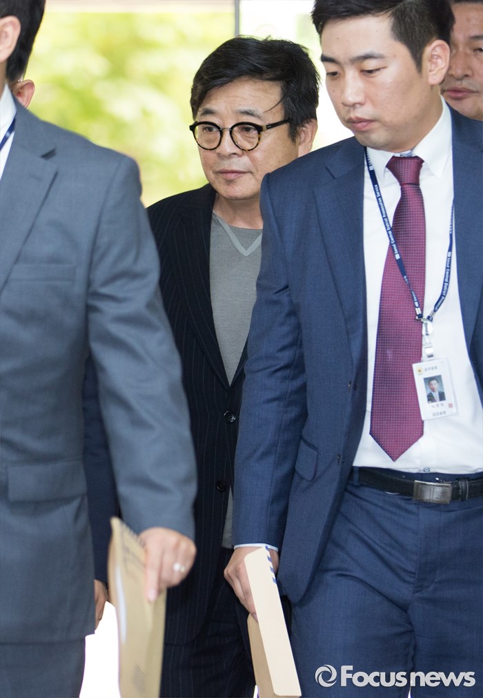 (서울=포커스뉴스) 대우조선해양 경영 비리에 연루된 이창하(가운데) 디에스온 대표가 영장실질심사를 받기 위해 15일 오전 서울중앙지법으로 들어서고 있다.