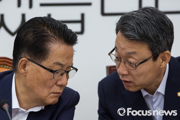 (서울=포커스뉴스) 박지원(왼쪽) 국민의당 비상대책위원장과 김성식 정책위의장이 15일 오전 서울 여의도 국회에서 열린 '비대위원-중진의원 연석회의'에 참석해 대화 하고 있다.