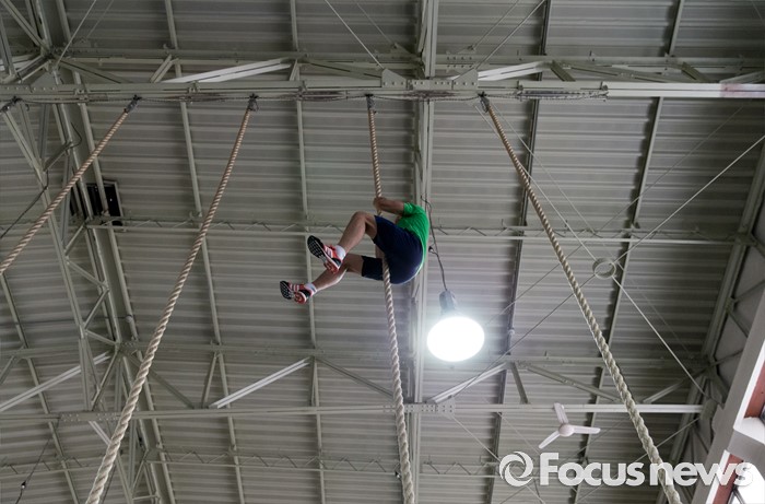 (서울=포커스뉴스) 15일 오전 서울 노원구 태릉선수촌에서 한 레슬링 국가대표 선수가 훈련에 열중하고 있다.
