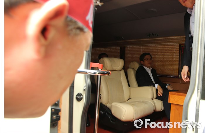 (성주=포커스뉴스) 황교안 국무총리가 15일 오전 경북 성주군청광장에서 사드(THAAD, 고고도미사일방어체계) 배치에 대한 주민설명회를 마치고 차량에 탑승하자 김항곤 성주군수가 면담을 하기 위해 차량에 오르고 있다.
