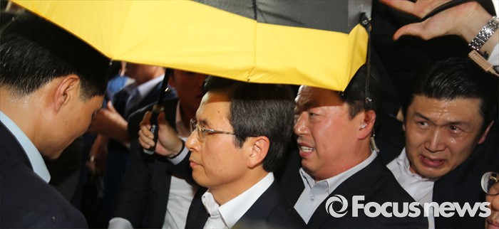 (성주=포커스뉴스) 황교안 국무총리가 15일 오전 경북 성주군청광장에서 사드(THAAD, 고고도미사일방어체계) 배치에 대한 주민설명회를 가진 가운데 주민들이 투척하는 물병을 피하고 있다.
