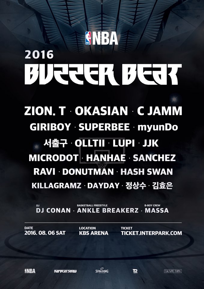 버저비트 2016은 멀티 스트릿 캐주얼 브랜드 'NBA'가 후원하고 국내 힙합 공연 기획사 '컬쳐띵크(CULTURE THINK)'가 매년 여름 주최하는 문화행사다. 스트릿 문화를 자유롭게 즐길 수 있는 힙합 컬처 페스티벌이다.