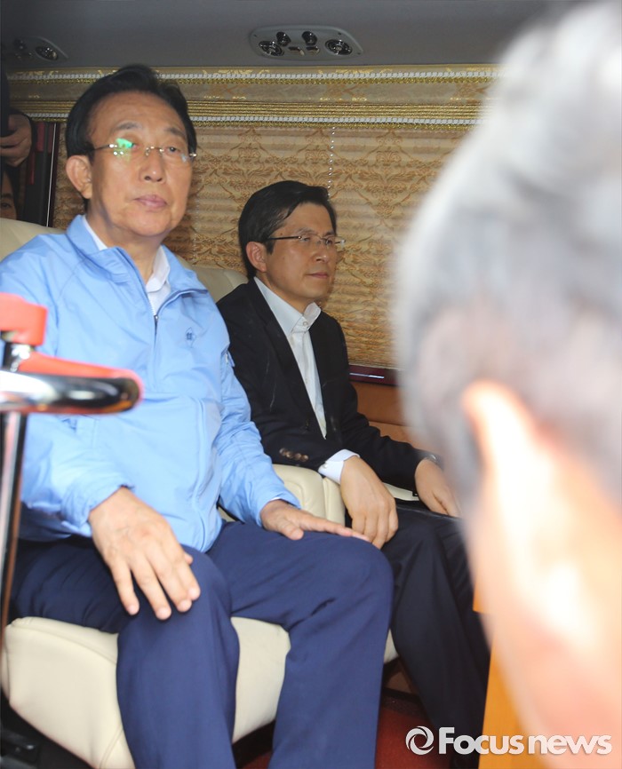 (성주=포커스뉴스) 황교안 국무총리와 한민구 국방부장관이 15일 경북 성주군청광장에서 사드(THAAD, 고고도미사일방어체계) 배치에 대한 주민설명회를 마치고 차량으로 이동하면서 주민들이 차량을 막아서 5시간째 대치 상태를 보였다. 주민 대표가 총리와 면담을 하기위해 차량으로 탑승하고 있다.