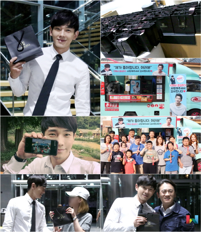 지난 14일 상암에 위치한 '미녀 공심이' 촬영장에는 온주완이 준비한 통 큰 선물들이 깜짝 등장했다. 온주완은 천연 양한방브랜드 로하셀의 팩트와 토너, 재생크림 150여 세트를 매일같이 무더위 속에서 야외 촬영을 이어가는 배우들과 스태프들에게 선물했다. 특히 이날 새벽까지 진행된 촬영에도 특유의 밝은 미소로 선물을 건네 현장에 화기애애함을 더했다는 후문.