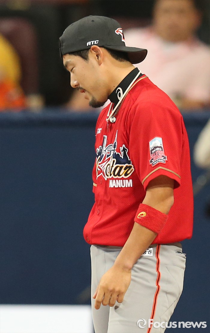(서울=포커스뉴스) 16일 서울 고척 스카이돔에서 열린 2016 프로야구 올스타 경기에 앞서 가진 번트왕 대회에서 나눔팀의 이용규가 타구가 표적에서 벗어나자 실망한 표정으로 돌아서고 있다.