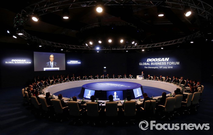 (서울=포커스뉴스) 두산은 15일(현지시간) 스코틀랜드에서 윌리엄 헤이그 전 영국 외무장관, 조지프 스티글리츠 미국 컬럼비아대 교수, 이창용 국제통화기금(IMF) 아시아태평양 담당 국장 등이 참석한 가운데 '2016 두산 글로벌 비즈니스 포럼'을 열었다고 17일 밝혔다.
