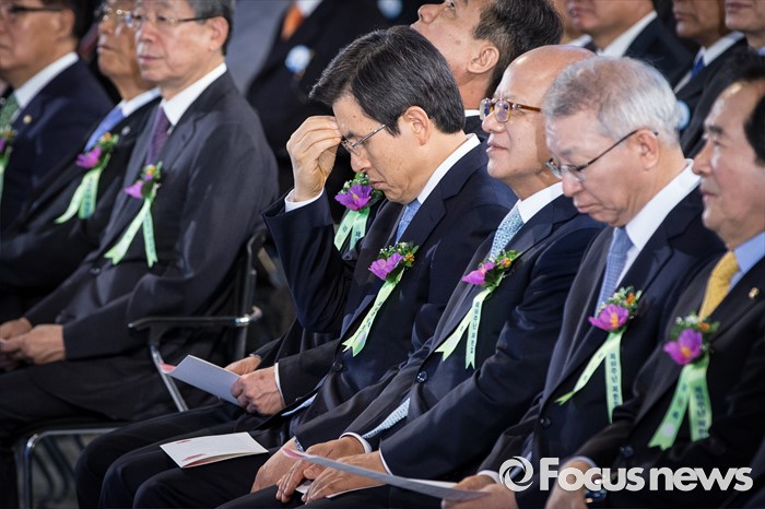 (서울=포커스뉴스) 황교안(오른쪽 네 번째) 국무총리가 17일 오전 서울 영등포구 여의도 국회의사당 중앙홀에서 열린 제68주년 제헌절 경축식에 참석하고 있다.