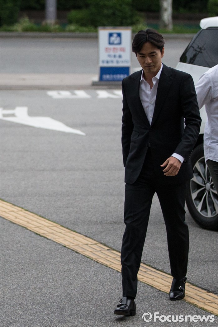 (서울=포커스뉴스) 성폭행 혐의로 피소된 배우 이진욱이 17일 오후 서울 강남구 수서경찰서로 출석하고 있다.