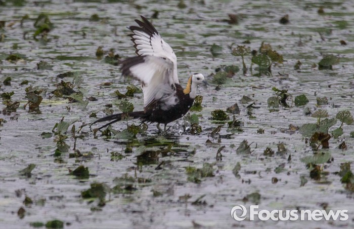 (의왕=포커스뉴스) 아열대성 조류인 물꿩이 경기 의왕시 왕송지의 연밭에 나타나자, 탐조가들은 경남 우포처럼 이곳에서 번식하기를 기대하고 있다.