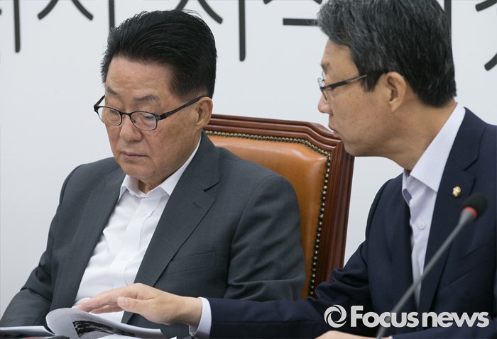 (서울=포커스뉴스) 18일 오전 서울 여의도 국회에서 열린 국민의당 비상대책위원회의에 참석한 박지원(왼쪽) 비대위원장과 김성식 정책위의장이 함께 자료를 보고 있다.