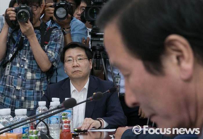 (서울=포커스뉴스) 18일 오전 서울 여의도 국회에서 열린 외교통일위원장 및 3당 간사단과 통일부, 개성공단 기업협의회 임원진 긴급간담회에 참석한 김형석(왼쪽) 통일부 차관과 정기섭 개성공단입주기업 비대위 대표공동위원장 등이 심재권 외통위원장의 모두발언을 듣고 있다.