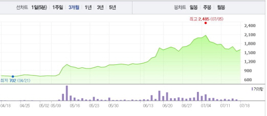 앞서 키스톤글로벌은 6월10일부터 17일까지 6거래일 연속 상승세를 나타내는 등 꾸준히 상승 곡선을 그려왔다. 그렇지만 6일부터 8일까지 1~10%의 낙폭을, 12일과 13일 다시 낙폭을 기록하면서 상승 탄력이 둔화된 것 아니냐는 의견이 나왔다.