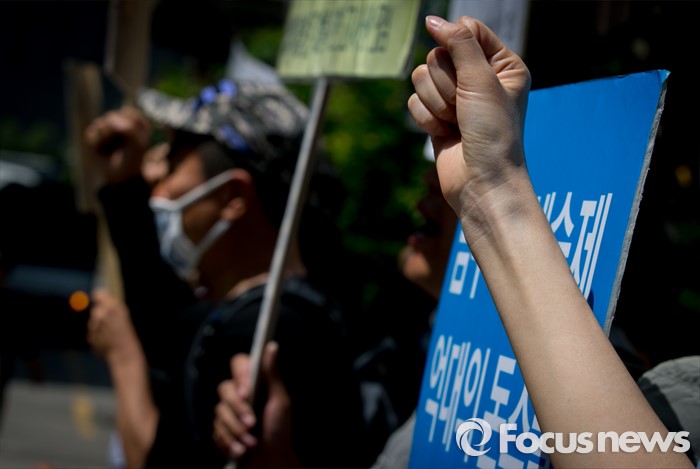 한편 지난해 9월 출범한 한국법조인협회는 로스쿨 출신 변호사들로 구성된 단체로 변호사가 의무 가입해야 하는 법정단체는 아니다.(서울=포커스뉴스) 18일 오전 서울 여의도 더불어민주당사 앞에서 사법시험 존치를 위한 고시생모임이 사시존치 법안의 법제사법위원회 전체회의 상정을 가로막은 더불어민주당 규탄시위를 하고 있다. 2016.05.18 박동욱 기자
