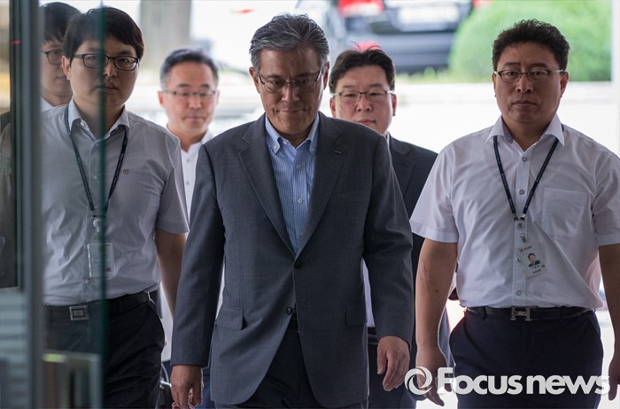 | △ 법원 들어서는 강현구 사장 |