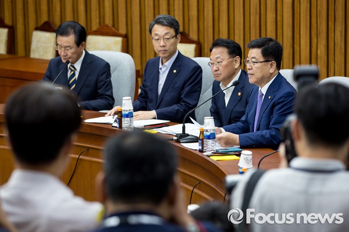 (서울=포커스뉴스) 김광림(오른쪽) 새누리당 정책위의장이 정책위의장이 18일 오전 서울 여의도 국회에서 열린 '3당 정책위의장-경제부총리, 3차 민생경제 현안점검회의'에 참석해 모두발언 하고 있다.