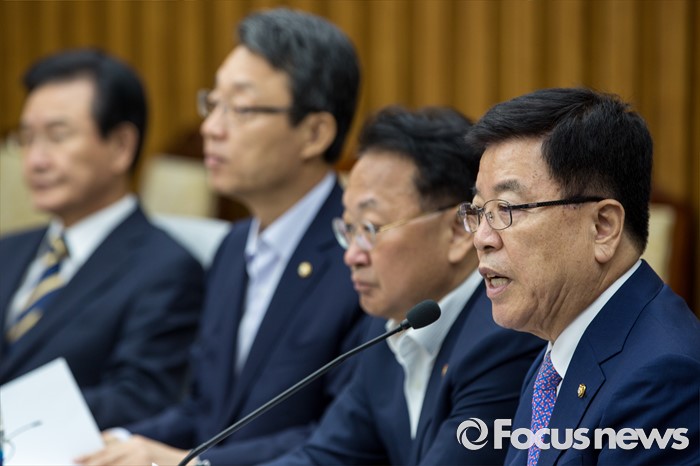 (서울=포커스뉴스) 김광림(오른쪽) 새누리당 정책위의장이 정책위의장이 18일 오전 서울 여의도 국회에서 열린 '3당 정책위의장-경제부총리, 3차 민생경제 현안점검회의'에 참석해 모두발언 하고 있다.