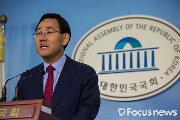 (서울=포커스뉴스) 주호영 새누리당 의원이 18일 오전 서울 여의도 국회에서 오는 8월9일 열릴 전당대회 당대표 출마 선언을 하고 있다.