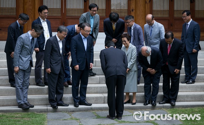 (서울=포커스뉴스) 정세균 국회의장이 18일 오전 서울 여의도 국회 사랑재에서 국회의원 특권 내려놓기 추진위원회 위촉장 수여식을 마친 뒤 참석자들과 기념촬영 후 인사하고 있다.