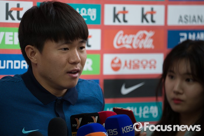 | △ 긴장된 표정으로 취재진 질문 답하는 권창훈 |