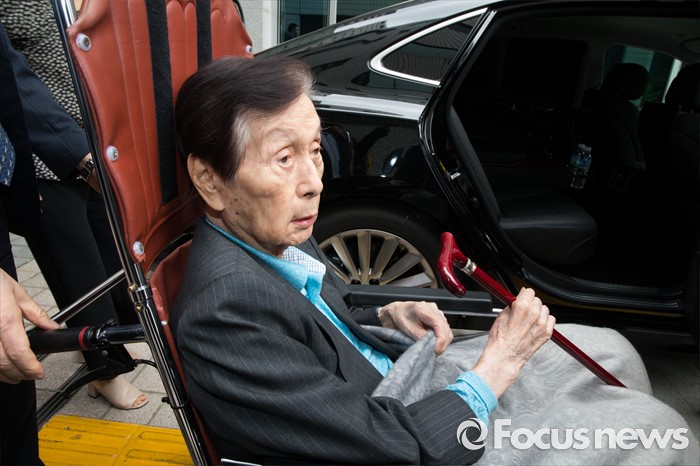(서울=포커스뉴스) 신격호 롯데그룹 총괄회장이 입원 40일만인 18일 오후 서울 송파구 서울아산병원에서 퇴원을 하고 있다.