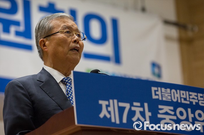 (서울=포커스뉴스) 김종인 더불어민주당 비상대책위 대표가 18일 오후 서울 여의도 국회의원회관에서 열린 '더불어민주당 중앙위원회의'에 참석해 인사말 하고 있다.