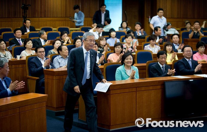 (서울=포커스뉴스) 18일 오후 서울 여의도 국회 헌정기념관에서 한국적 제3의 길 후원으로 열린 '개헌을 말하다 의원 대담, 어떤 헌법인가?'에 참석한 김종인 더불어민주당 비대위 대표가 축사를 위해 단상으로 향하고 있다.